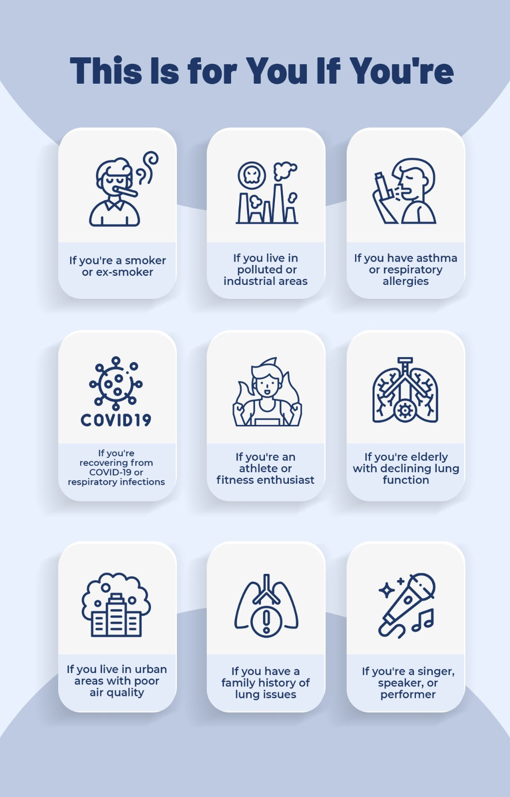 The natural lung vitamins in our formula work as a lung detox cleanse, helping clear mucus build-up, ease congestion, and purify lungs from harmful toxins .It helps ease dry or wet cough, throat irritation, and phlegm buildup while soothing the respiratory tract and reducing the chance of recurring infections. Perfect for people prone to frequent coughs, colds, or seasonal allergies.